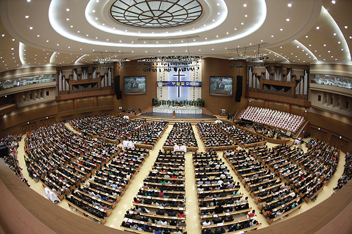“Audio is handled by three Harrison’s Trion consoles. Two are used as live broadcast consoles, while the third is utilised for fully automated post-production. A stand-alone Trion is used as a front-of-house console to provide the onstage monitor mixes from a remote controller. Each console is networked via fibre to a Harrison digital engine and has combined inputs of 288 microphones, 160 digital 40-bit channels, working over 96 fader strips. Graphics are provided by Compix, while editing is done using Final Cut Pro X.” The original programming is broadcast in the Korean language, although the on-demand option on the church’s website carries English subtitles.