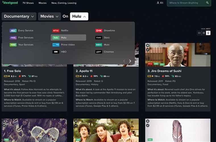 Since it was launched in 2015, the Reelgood platform has acquired tens of millions of users, says Sanderson, and after growing in the US it’s about to launch into Europe and South America, starting in the UK in early 2020. The growth of the service has been largely organic: Reelgood hasn’t spent any money on advertising. The company won the Webby award last year for best entertainment app.