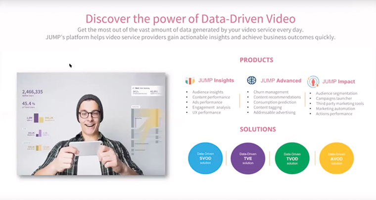 Jump already boasts an impressive roster of customers and many of its products now come pre-integrated into third-party solutions offered by Comcast, Accedo, Toolbox, Google Cloud and Brightcove. Last year, the Madrid-based company secured Series A funding led by Accedo – one of its most influential customers in terms of product design – as well as numerous investment angels.