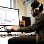 Face the music Samuel Day, production coordinator, on set for the Homobloc live stream