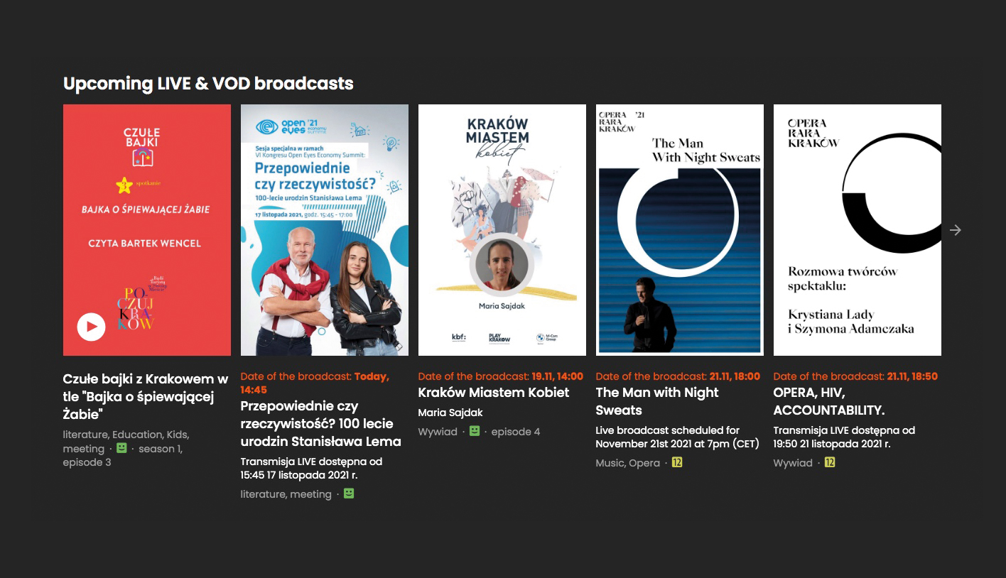 We encourage people to participate digitally in Kraków's cultural events through this platform