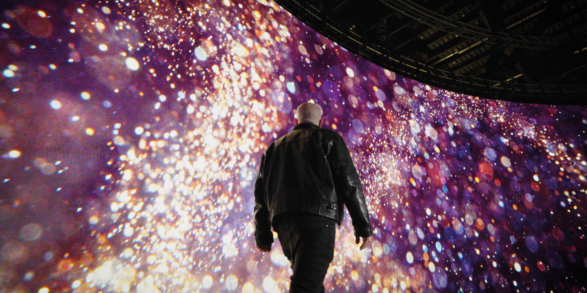 The curved screen, measuring 18m wide and 5m high, is composed of 450 ‘assortments’, each including a combination of eight LED modules. Sony’s Crystal LED tech allows for a very high contrast ratio, very thin pitch (1.5mm vs 2.6mm, the current market standard) even with a curved screen and the best reproduction of detail and movement.