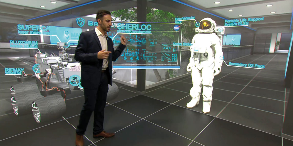 Why not have the best of both worlds? Brainstorm’s InfinitySet can effortlessly integrate Aston graphics within the Unreal Engine scene, allowing for advanced audio-visual aids such as in-context typography, motion graphics, statistics, charts and many more examples. These are all perfectly integrated in the composition – in terms of animation, tracking, perspective matching and, of course, image quality.