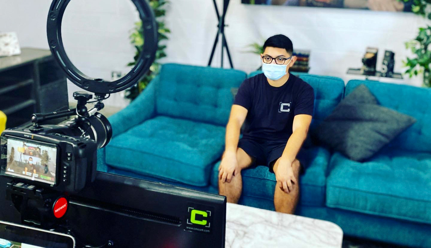 For the broadcast, the Emmy nominees were livestreamed from their homes or private locations during the announcements of winners. C Mount was tasked with hooking up the 26 nominees located in the LA area. Each nominee was sent a kit, made up of a Blackmagic Pocket Cinema Camera 6K and an ATEM Mini Pro switcher. The rig also featured a ring light and a talent-facing monitor that allowed the nominee to see their own camera feed as well as the show.