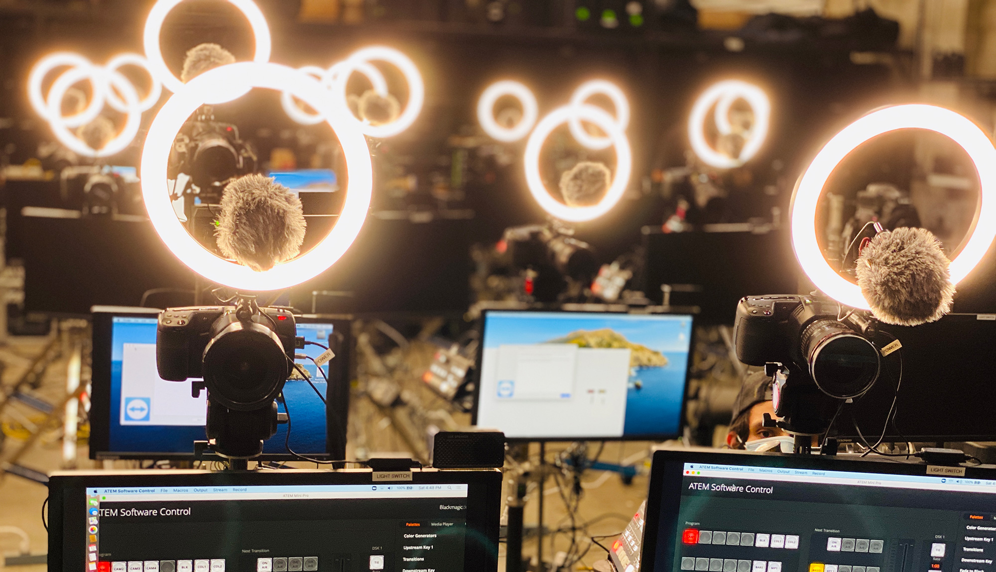 “We wanted something small, compact and easy to use, but it still had to have a big sensor – it had to make the talent look great,” says Liquori. “We started testing immediately and came down to the Blackmagic Pocket Cinema Camera 6K. It allowed us to have a small footprint with a cinematic image. The ATEM Mini Pro gave us full remote RCP control. We were able to remote into their computer to set up their conferencing software and dive right into all the camera control settings, including focus and aperture.
