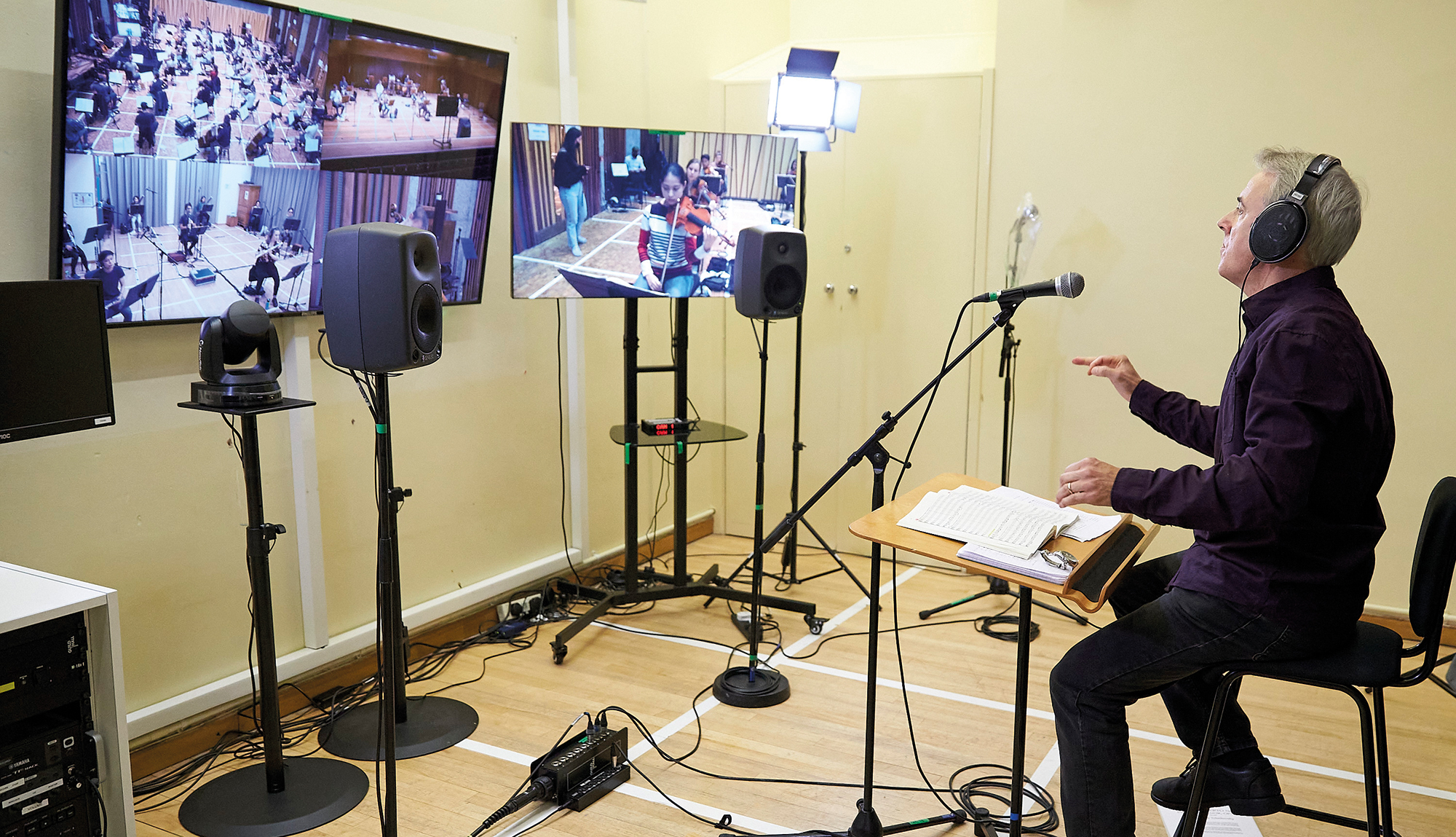 “We installed a bunch of screens in each room. As well as the musicians always seeing a conductor, this means each room also has a quad view of the other rooms, so there’s a sense of visual connection among the musicians.”